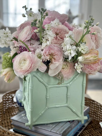 Enhance your decor with our Bamboo Metal Planters, featuring an elegant bamboo design that blends modern sophistication with natural charm. These versatile planters are perfect for showcasing fresh flowers, topiaries, ferns, and even festive holiday florals.