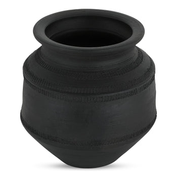 Made of hand-thrown terracotta in India. Each indentation is hand-done as the entire vessel is hand-finished