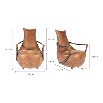 Moe's Home Collection - Carlisle Club Chair Grazed Brown Leather - PK-1026-03