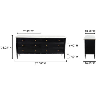 Moe's Home Collection - Eleanor 6 Drawer Dresser Black - RP-1061-02