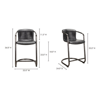 Moe's Home Collection - Freeman Counter Stool Onyx Black Leather -Set Of Two - PK-1061-02