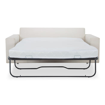 Wide track arm with clean lines that opens to a short queen mattress that fits queen bedding