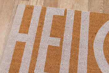 A welcome mat with major mojo, the retro styling of this outdoor area rug is perfect for welcoming family and friends into your home. Graphic color blocking and bold typography calls attention to words with fashionable flair and an exterior application that you can wipe your feet on. Each decorative floorcovering is crafted from 100% natural coir fibers to create a area rug assortment that's as sustainable as it is cool.