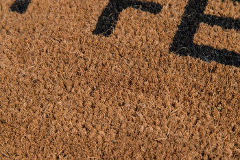 A welcome mat with major mojo, the retro styling of this outdoor area rug is perfect for welcoming family and friends into your home. Graphic color blocking and bold typography calls attention to words with fashionable flair and an exterior application that you can wipe your feet on. Each decorative floorcovering is crafted from 100% natural coir fibers to create a area rug assortment that's as sustainable as it is cool.