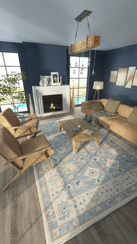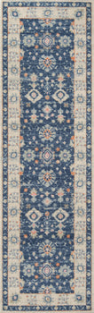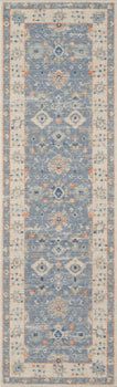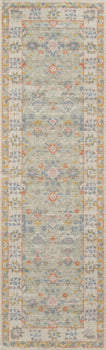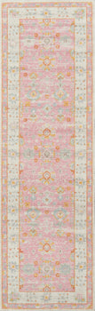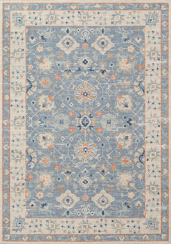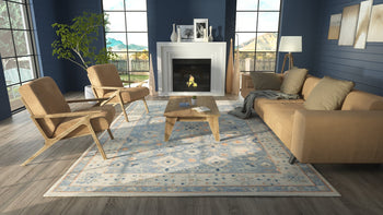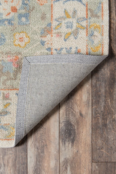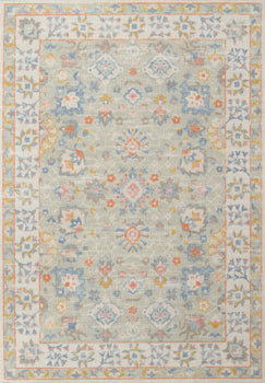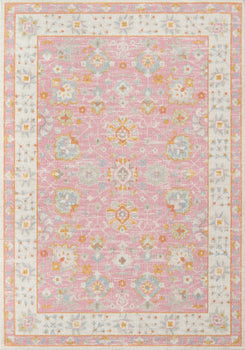 SOFT TRIBAL LOOK: The pastel color palette of Anatolia presents a softer side of tribal styles. Subdued shades of pink, baby blue and brown fill the field and ornamental rug borders with classical medallions and vine and dot motifs.