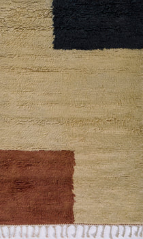 Beautiful hand woven thick shag rugs made from 100% New Zealand wool, using mill spun yarns. Made in India, the yarn is locally dyed in the traditional Vat Dying method. Before the first wash, the back of each rug is mildly burnt with hand-held flame emitting stoves. The rugs are given two rounds of rigorous washing, to provide the softest comfort underfoot. The finishing process includes hand shearing, with a unique and exaggerated one sided tassel fringe. Each tassel is twisted and rolled by hand into bunches with a knot tied at each end, for a unique hand-crafted appeal.