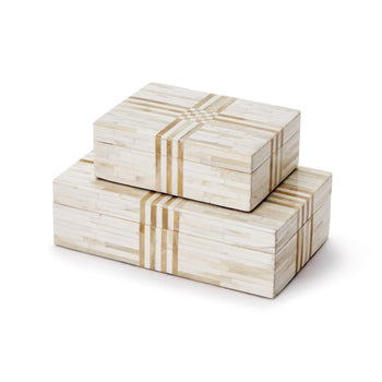 Two's Company Monaco Set of 2 Covered Box - Bone/MDF