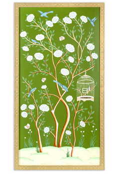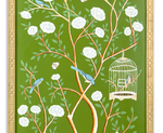 The Enchanted Home Moss Green And Multi Color Bird Cage Chinoserie Mural