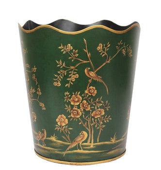 The Enchanted Home Moss Green & Gold Scalloped Wastepaper Basket