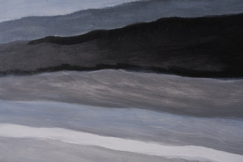 Layers of cool blue, grey and black tones in this painting evoke a sense of exploring a mountainous terrain. Features a black finished wood floater frame. Each artwork is hand-painted and will feature slight variations that make every piece unique.