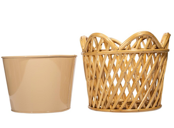 The Enchanted Home Natural Round Scalloped Lattice Rattan Planter