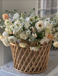 Elevate your indoor or outdoor greenery with the charming Natural Round Scalloped Lattice Rattan Planter. This exquisite planter combines the timeless appeal of natural rattan with a beautifully scalloped lattice design, adding a touch of rustic elegance to any space. The natural rattan construction ensures durability and a lightweight feel, making it easy to move and position wherever needed.