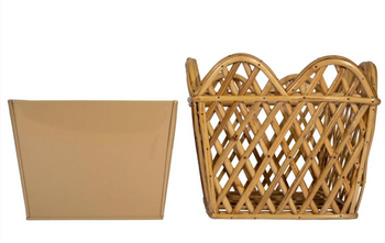 The Enchanted Home Natural Square Scalloped Lattice Rattan Planter