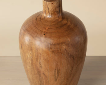 The Noboli Table Lamp elevates the classic gourd shape by incorporating organic elements. Handcrafted from solid acacia wood, each piece showcases the unique characteristics of this natural material.