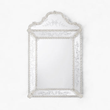 - Murano glass mirror with hand-etched panels and silver leaf
