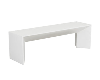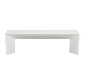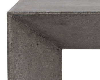 Simple and refined, this concrete bench has sharp lines that create visual interest towards the inner frame.