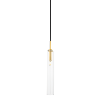 Streamlined in style, the Nyah Pendant delivers elevated proportions with an oversized glass shade. The aged bass socket is the perfect metallic accent, shining subtly in the tubular shade. Also available in a smaller size.
