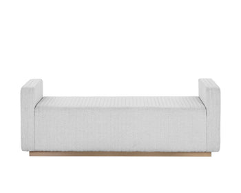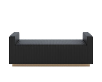 Boasting a chic block design, this modern bench features a minimalist design with high impact. Upholstered in maven black faux leather with channel tufting. Completed with a striking antique brass stainless steel base. Also available in ernst silverstone fabric. Handle With Care: This design has been crafted with faux leather. Faux leather is manufactured to reflect the natural characteristics of leather; as such, colour variations, markings wrinkles, grooves, and light scratches are appreciated characteristics. No two pieces will be alike. Visit our Product Care page for more information on how to ensure the lasting beauty of this piece.