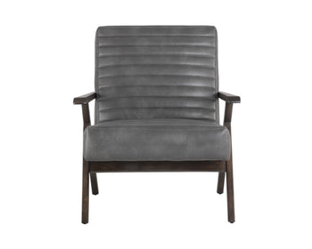 This mid-century inspired lounge chair features modern design with a hint of retro flair. Features horizontal channel tufting on the seat and seatback. Stocked in cantina saddle and magnetite leather with a rich solid oak frame. Handle with Care: This design has been crafted with bonded leather. Bonded leather is a blend of reconstituted leather and synthetic materials crafted to reflect the natural characteristics of leather; as such, colour variations, markings, wrinkles, grooves and light scratches are acceptable and appreciated characteristics. No two pieces are alike. Visit our Product Care page for more information on how to ensure the lasting beauty of this piece.