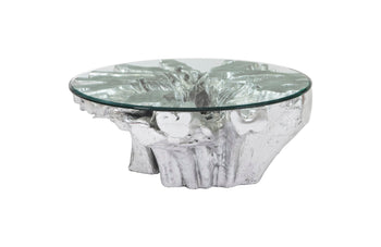Phillips Collection - Abyss Cast Root Coffee Table With Glass, Silver Leaf - PH67967