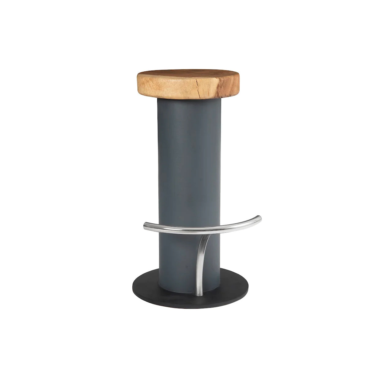 Phillips Collection - Concrete Bar Stool, Chamcha Wood Top, Stainless Steel Footrest - TH78368