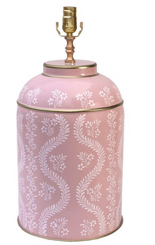 The Enchanted Home Pink & White IKat Trellis Tea Caddy Lamp