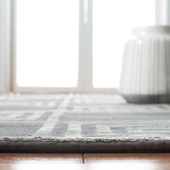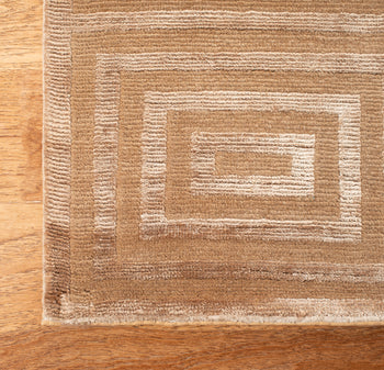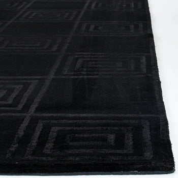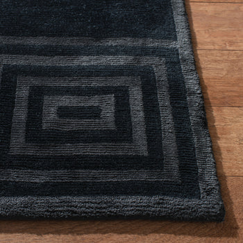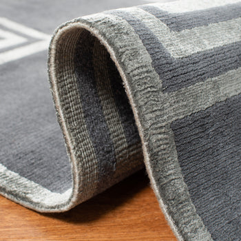 Introducing our exquisite hand-knotted area rug, a luxurious addition to any interior space. This rug features a timeless geometric pattern with intricate spirals and classic square motifs that exude elegance and sophistication. Crafted in the serene shades, this rug invites a sense of calm and luxury into your home.