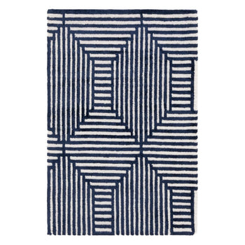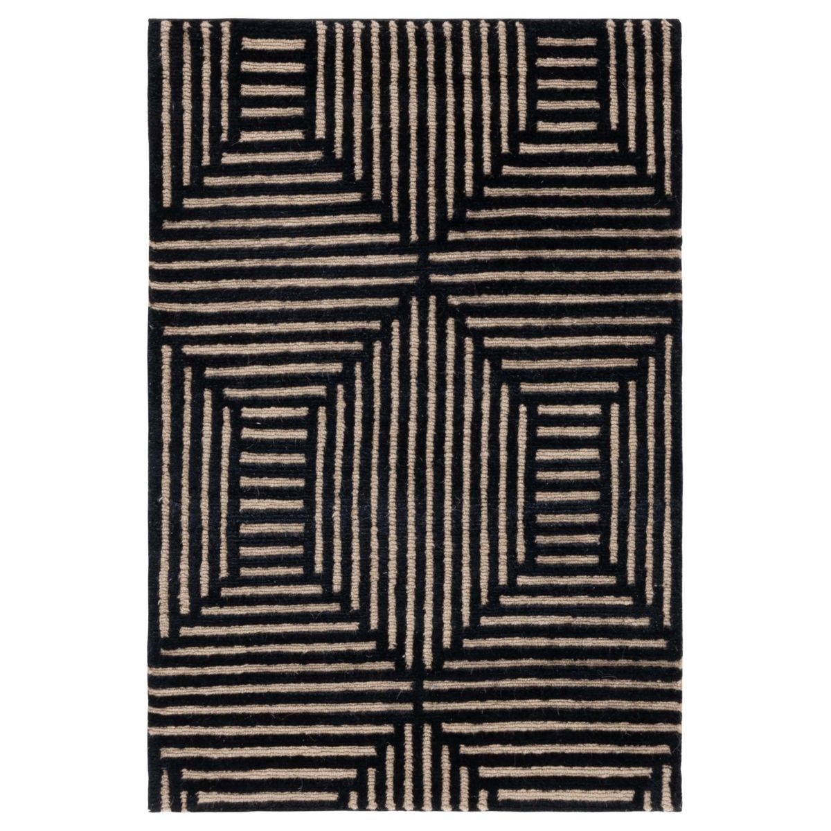 The rug's design boasts a harmonious array of linear motifs and symmetrical shapes, creating a mesmerizing lattice work that commands attention. The 1/4" pile height ensures that the rug maintains a sleek profile, perfect for accenting any room without overwhelming the space.