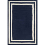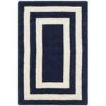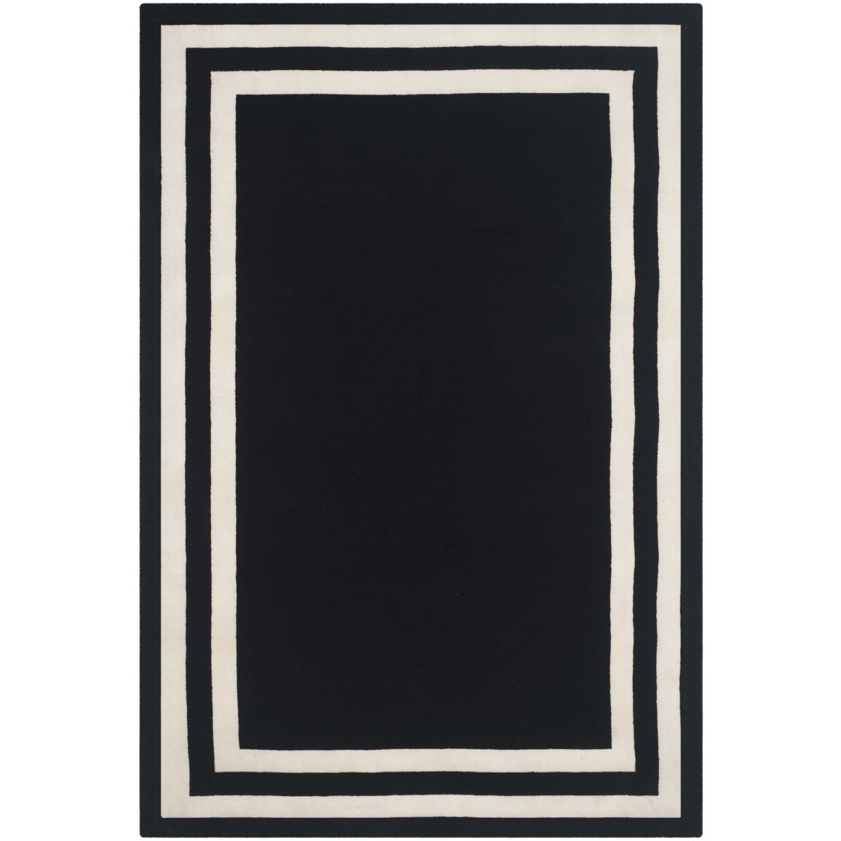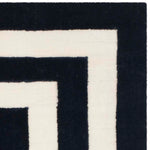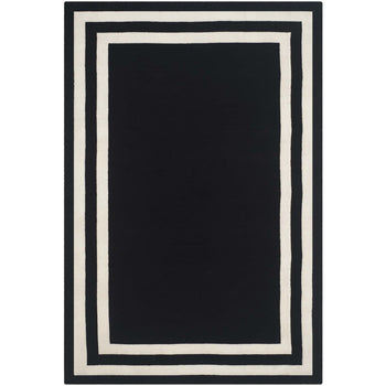 Elevate your space with the timeless elegance of our hand-knotted wool area rug, meticulously crafted in India. This exquisite accent rug, with a modest pile height of 1/4", boasts a sumptuous jet black base, framed by a sophisticated geometric border pattern in a contrasting hue, adding depth and dimension to any room.
