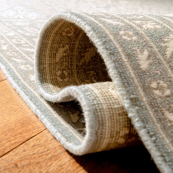 Elevate your space with the elegance of our traditional area rug. Crafted with care in Pakistan, this hand-knotted masterpiece brings a touch of sophistication to any room. Featuring a sleek height of 1/8 inch, its shape is ideal for defining spaces with style.