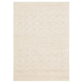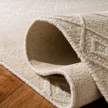 Elevate your space with the timeless sophistication of our 2' X 3' Limestone-colored accent rug. This elegant piece boasts a subtle yet chic diamond pattern that exudes a sense of luxury and refinement. Expertly hand-knotted by artisans in India, this rug combines the natural textures of 80% linen and 20% cotton, offering both durability and softness.