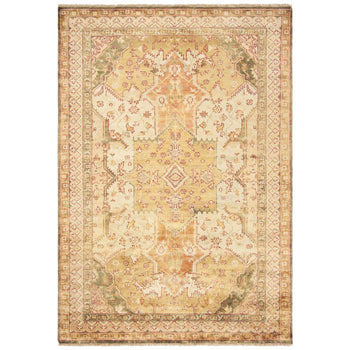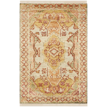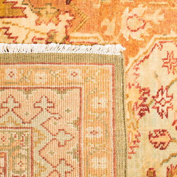 Step into a world of warmth and elegance with our handcrafted 2' X 3' accent rug, featuring the vivid hues of Summer Melon. The traditional craftsmanship of hand knotting creates a piece that blends cultural heritage with contemporary style, offering a touch of luxury to any room. With its comfortable 1/4" pile height, this woolen masterpiece is not only a visual treat but also a delight underfoot.