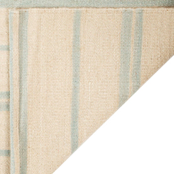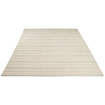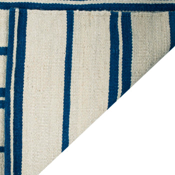 Introducing our exquisite hand woven wool area rug, a serene addition to any space. Crafted with meticulous attention to detail, this 2' x 3' accent rug boasts a plush 1/4" pile height that promises comfort underfoot. The sky-hued palette evokes the tranquility of a clear day, with subtle stripes that add a hint of sophistication and visual interest.