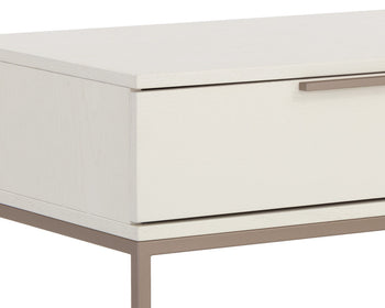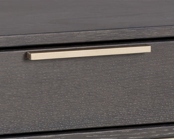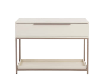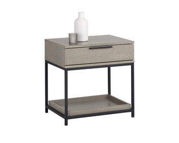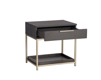 A modern nightstand designed to add a beautiful touch to the bedroom. Crafted from raw umber oak veneer with a soft closing drawer and shelf for added storage. Brushed gold iron hardware completes the look. As wood is an organic, porous material, these pieces will contain natural variation of texture and may also exhibit fine indentations and cracks. Wood pieces will also display a disparity of colour and grain, and visible knots and burls that add to the character of each piece.