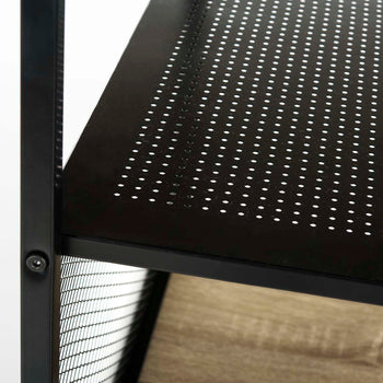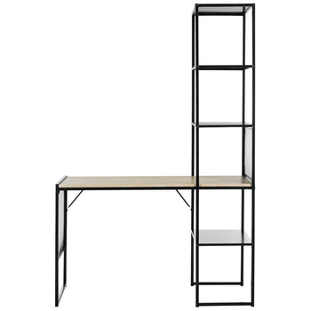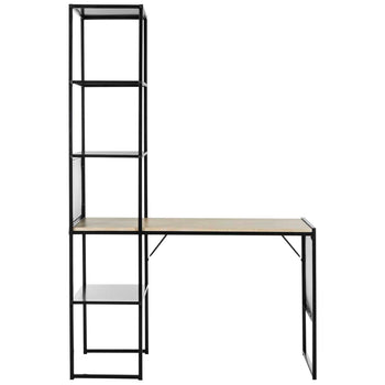 A study in form and function, this modular black writing desk brings maximum style and storage to any space. A favorite of architects, its open and closed shelving and sleek geometric lines cut a dashing figure. Crafted in metal, it's a wise investment.
