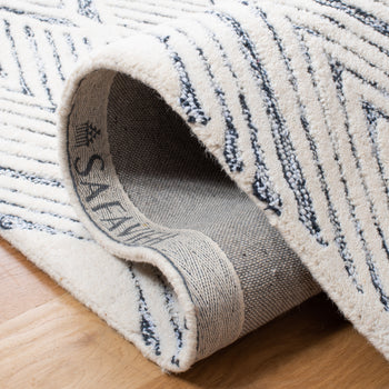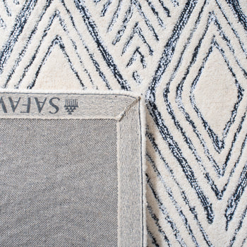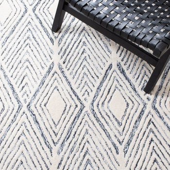 Elevate your space with the exquisite charm of our 3' x 5' small rectangle hand-tufted area rug, showcasing a harmonious ivory and charcoal color palette. This piece reveals a bold, contemporary diamond and chevron pattern that effortlessly captivates and complements any modern decor. Carefully crafted in India with a luxurious blend of 80% wool and 20% cotton, this rug promises both comfort and style with a pile height of 1/2", ensuring a plush underfoot experience.