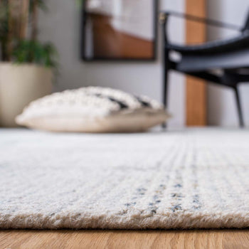 Infuse your space with the understated elegance of our contemporary 4' X 6' small rectangle area rug, hand-tufted with a luscious blend of 80% wool and 20% cotton. Crafted by skilled artisans in India, this rug features a plush 1/4" pile height, offering a soft underfoot experience. The ivory base accented with gold threads exudes a luxurious charm, harmonizing with the minimalist grid pattern to add visual interest without overwhelming your decor. Durable yet stylish, this non-slip-resistant rug is a statement piece designed for sophisticated interiors?but note it is not washable. Perfectly sized for a variety of rooms, it adds an instant touch of modern finesse to your home.