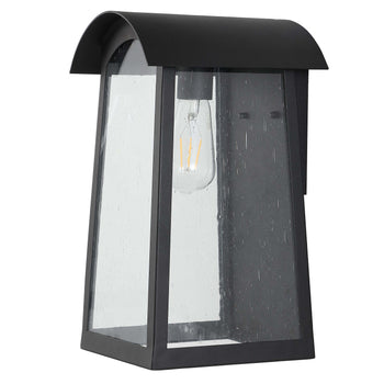 Enliven your exterior walls with the sophisticated charm of Adalai outdoor wall sconces. The arched top creates a beautiful contrast with the clean and crisp silhouette of the wall sconce. It gracefully widens towards the end to serve as a bold and charming detail upon your exterior walls. Featuring a black metallic finish and clear glass panels, the wall scone softens the light to provide a warm and pleasant glow to your entryway, patio, or backyard.
