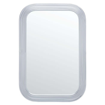 Make a grand regal statement with this astonishing Ahna Mirror. A thick striated silver frame and rounded corners create additional decorative depth, giving any room a dramatic refresh.
