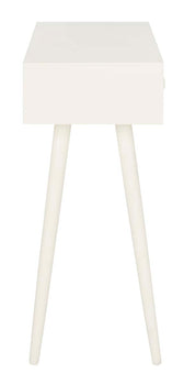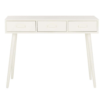 This Albus Console Table was perfectly styled to grace any Decor scheme, making it ideal for today's versatile interiors. Albus's Mid Century frame in antique white beautifully balances a hall or entry with a sense of depth, while three drawers provide discrete storage.