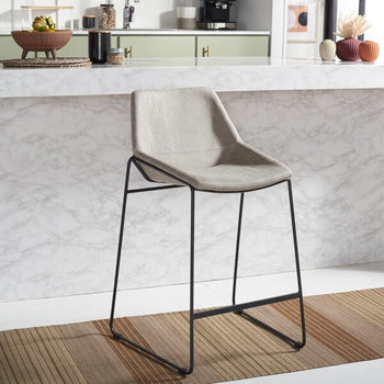 Elevate your entertaining with this Alexis Mid-Century Counter Stool. Designed for the modern host who appreciates a touch of retro style, Alexis's ash grey vegan leather perfectly accents any decor while providing a comfortably smooth seat for you or guests. Black hairpin-inspired legs give a designer-smart touch.