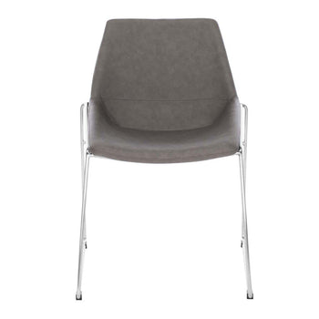 An investment in classic design, this deluxe Mid Century dining chair brings contemporary minimalist style to any dining room. Finely crafted with gentle curves, it features cigar brown faux leather upholstery and slender metal legs.Sold in sets of two.