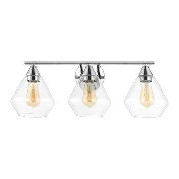 Add sleek style and elegance to your home with our Amani walls sconce. A linear metal arm suspends three glass shades to double duty as a stylish and functional wall fixture. The crisp angular lines of the shade lend a chic geometric appeal to our wall sconces. The clear glass shade creates an elegant contrast with chrome hardware. Vouching for a sleek and chic appeal, our wall sconce can bathe your walls in soft diffused light.