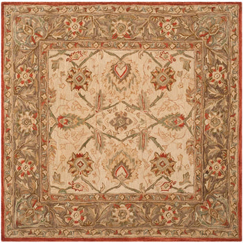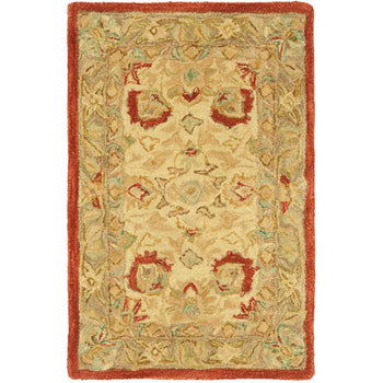 Indulge in the elegance of traditional design with this exquisite 2' x 3' accent rug, beautifully colored in soothing sage and neutral beige tones. Crafted using a hand-tufted technique in India, this wool piece is a testament to skilled artisanship and enduring style. The rug showcases a timeless pattern, lovingly created with detailed florals and classic motifs that bring a sense of sophistication and grace to any space. Ideal for adding a touch of warmth and refined charm to your home, this wool rug is a durable and plush addition to your decor. Whether placed by your bedside or as a luxurious footrest in your living room, this rug's inviting texture and rich color palette make it a versatile choice for an array of interiors.