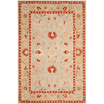 This rug's design boasts intricate floral motifs and border detailing, which will complement and enhance any room's decor. The wool construction not only ensures a plush feel underfoot but also adds to the durability and longevity of the rug, making it a valuable addition to your home.