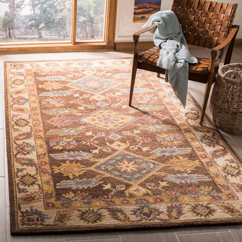 Expertly made in India, this area rug is not only a feast for the eyes but also a testament to the skill and craftsmanship of its creators. The plush wool provides a soft, warm texture, while the cotton adds strength and a slight sheen. Perfect for an intimate setting or as a focal point in a larger room, this rug is versatile and can complement a variety of decor styles from traditional to modern.