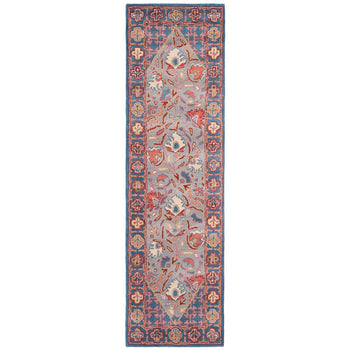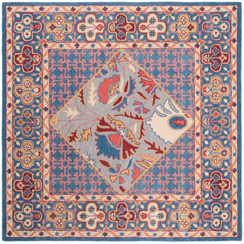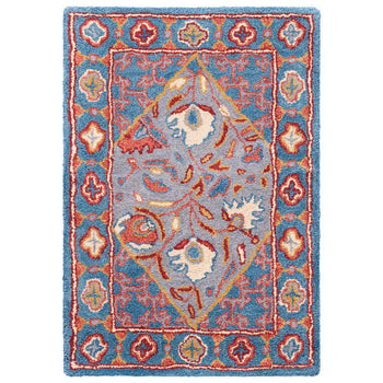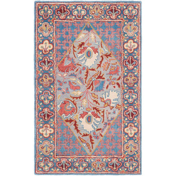 The rug features a captivating pattern that combines the serenity of blue with the warmth of red, set in a traditional motif that is enriched by the intricate details and precision seen in the image provided. These patterns draw inspiration from classic design elements, with elaborate floral and geometric shapes harmonizing to create an array of stunning visuals that capture both the eye and imagination.