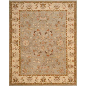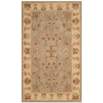 Elevate your living space with the timeless elegance of our 3' X 5' area rug, showcasing a harmonious blend of light grey and beige tones. This small rectangle rug exudes classic charm with a sophisticated pattern that draws inspiration from traditional design, featuring delicate floral and vine motifs intricately hand-tufted by skilled artisans from India.