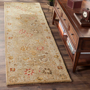 The Taupe/Beige color palette of this runner rug creates a serene foundation, blending effortlessly with a variety of interior styles. Featuring a timeless pattern, this piece showcases an intricate array of floral and botanical motifs that will infuse your home with a touch of nature's allure. Its classic design exudes a vintage aesthetic while still remaining fresh and modern.