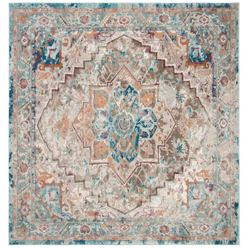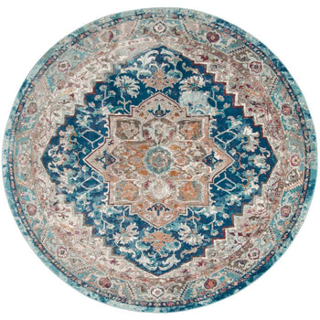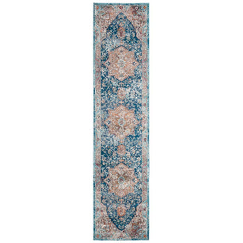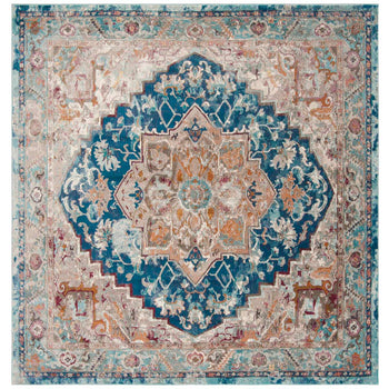 Boasting a plush 1/4" pile height, this accent rug features a harmonious blend of serene blues and warm beiges, capturing the essence of a bygone era while maintaining a contemporary edge. The centerpiece medallion pattern, detailed with intricate florals and classic motifs, is framed by an ornamental border that exudes an air of luxury and grace.